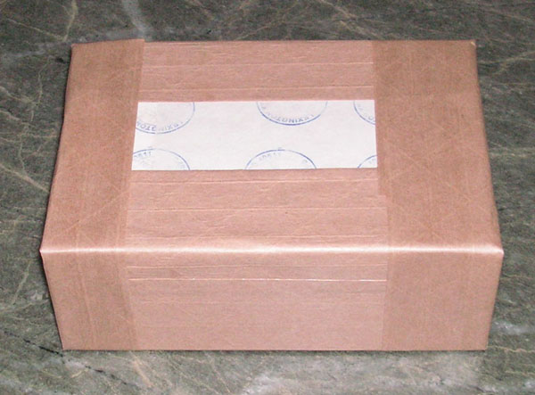 The sequence of images below illustrate how I wrapped the package to be mailed by insured registered mail.